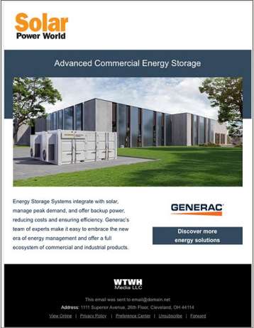 Solar Power World uses standard e-newsletter template and includes client provided content.